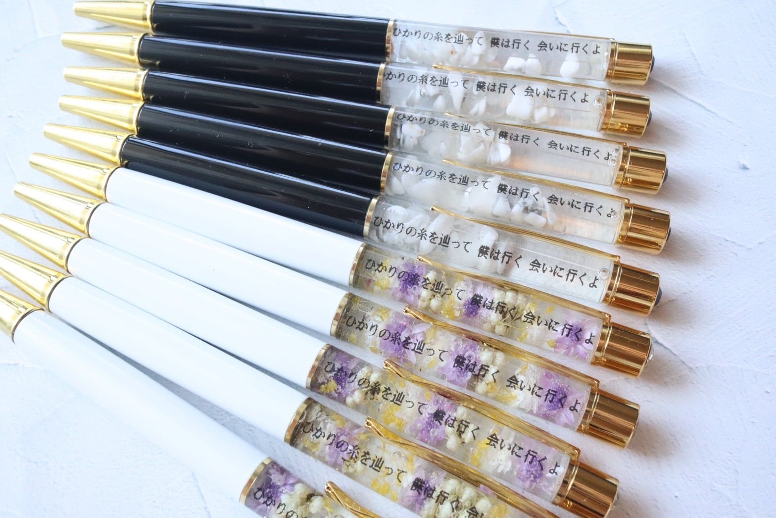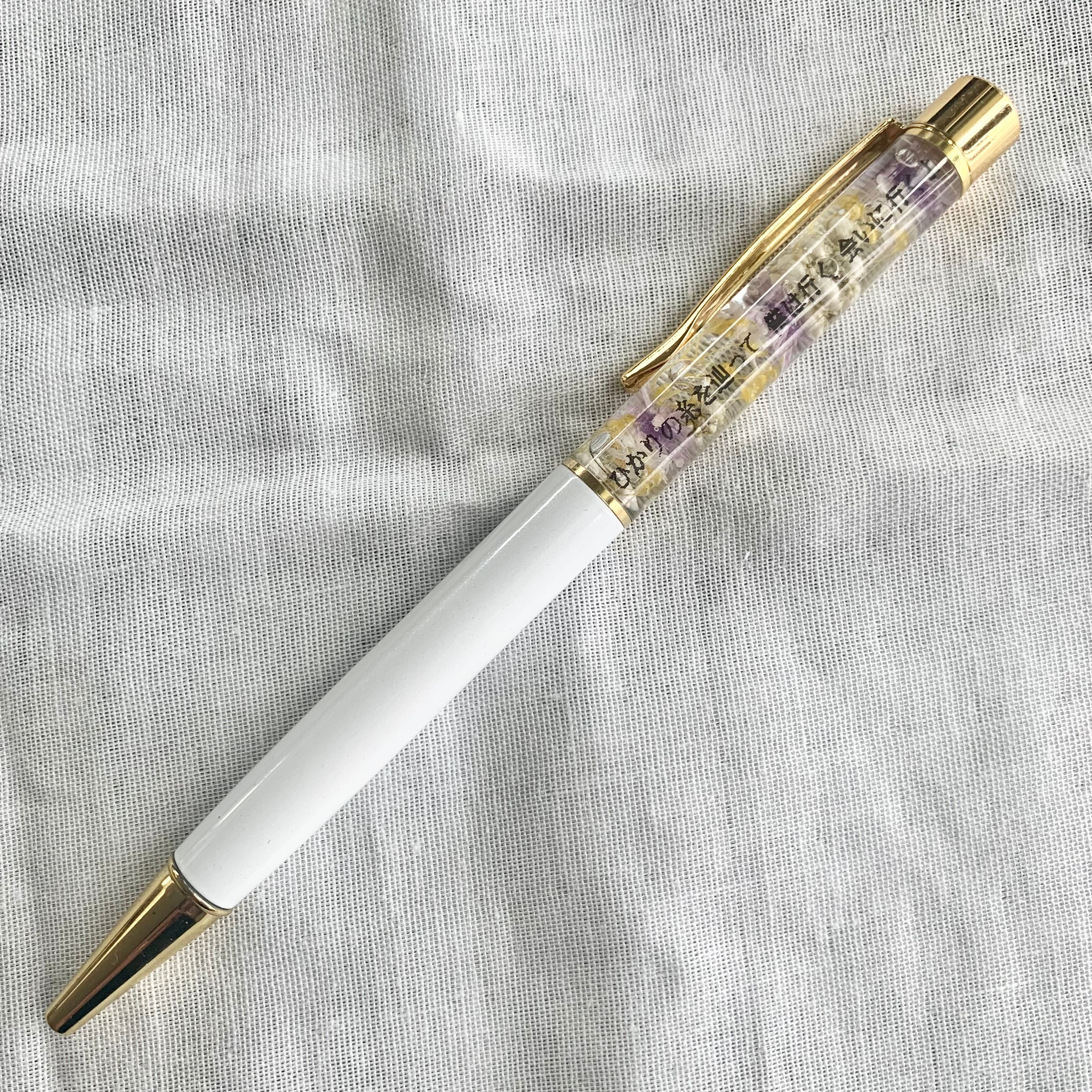 ボールペンには「ひかりの糸を辿って」の歌詞ワンフレーズと、ドライフラワーが入っております。